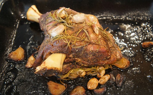 剩下的迷迭香和蒜放羊腿上面。